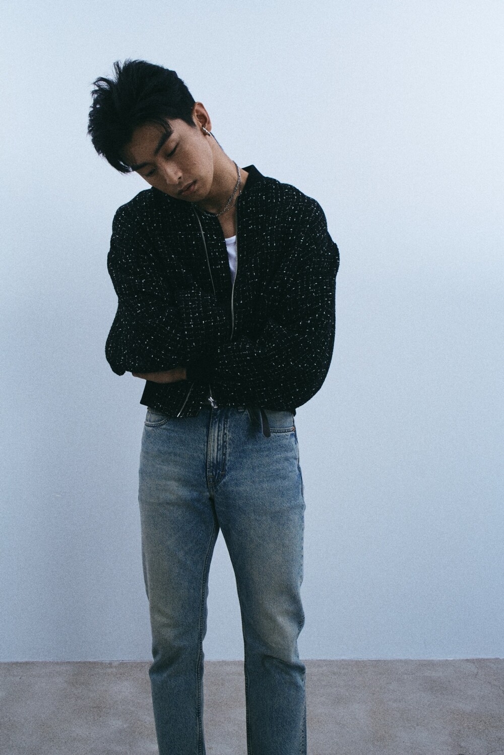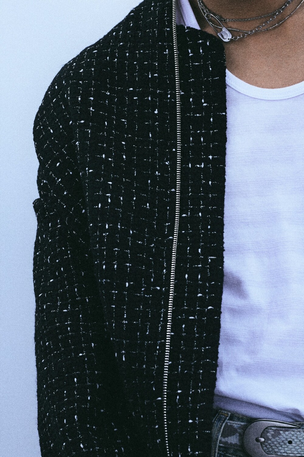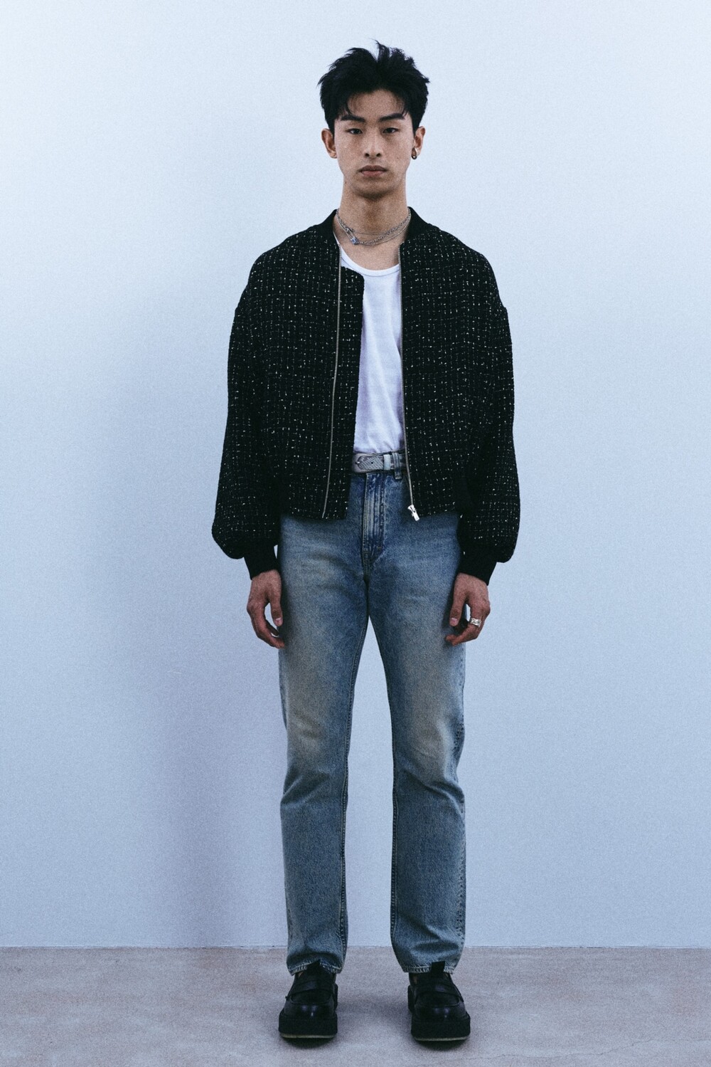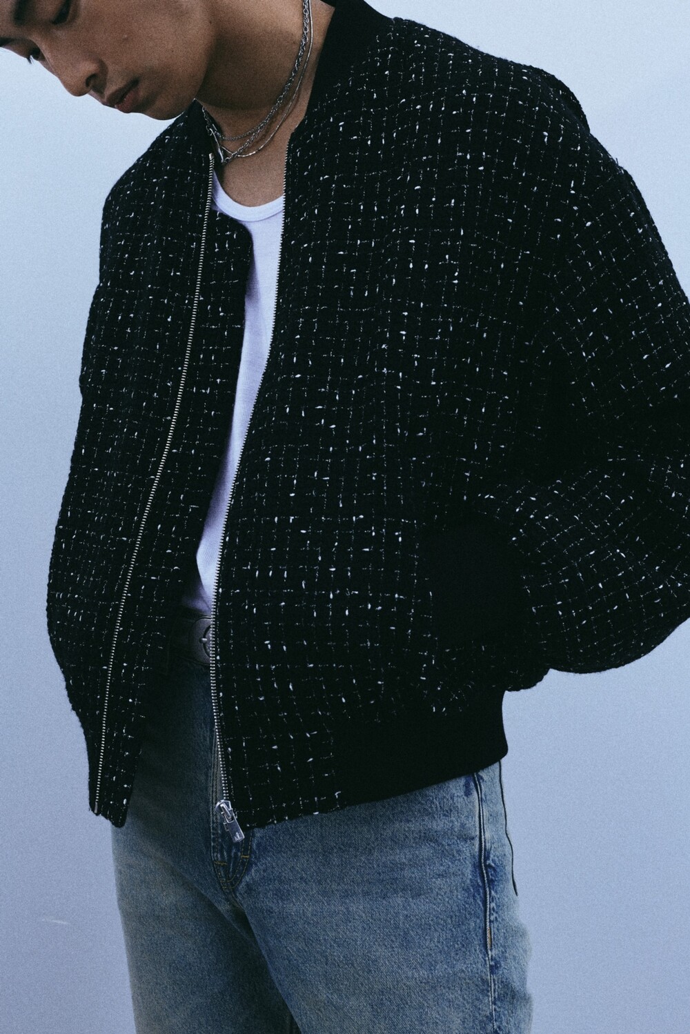 + black tweed bomber jacket