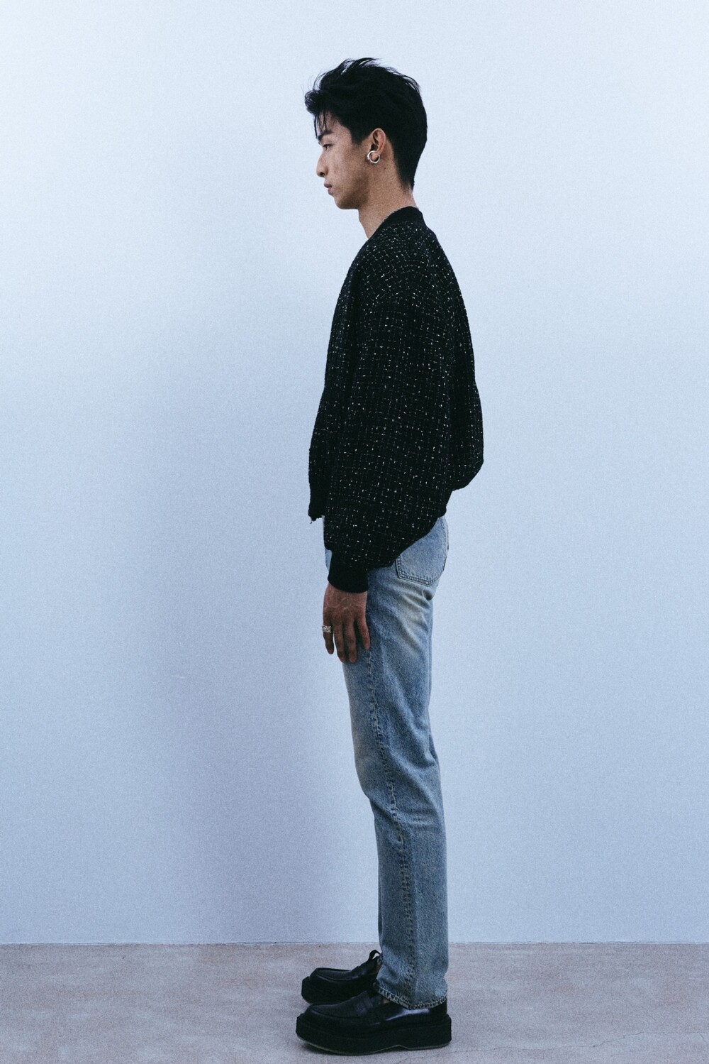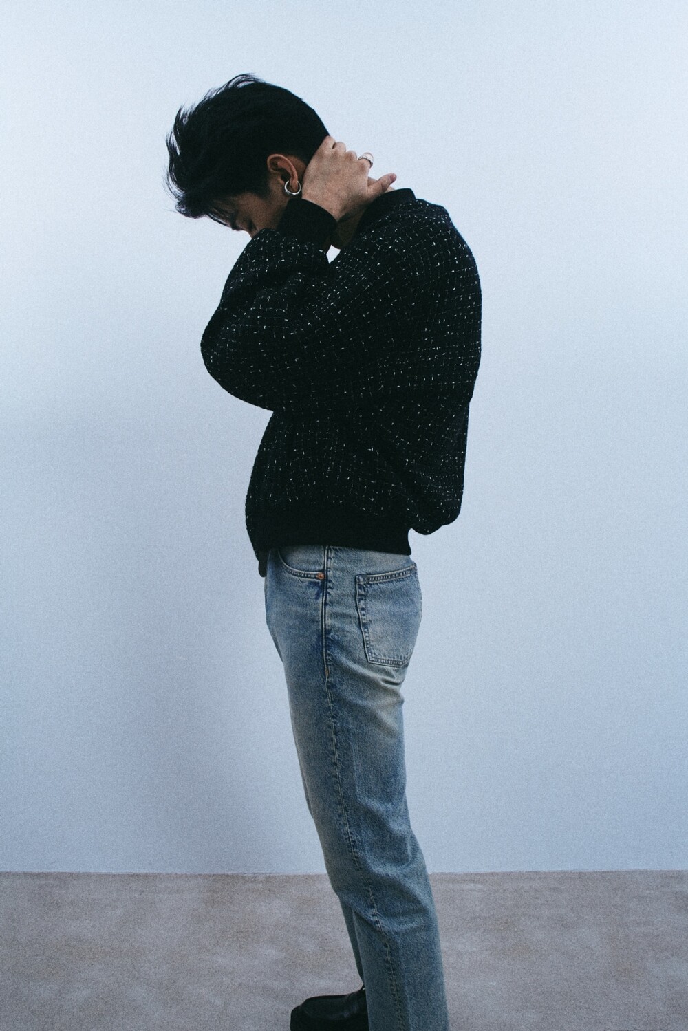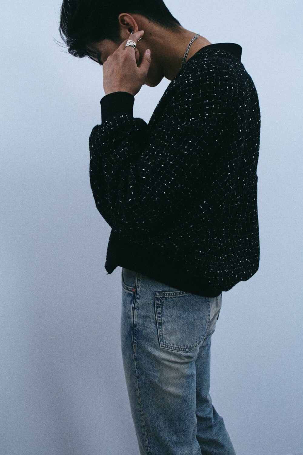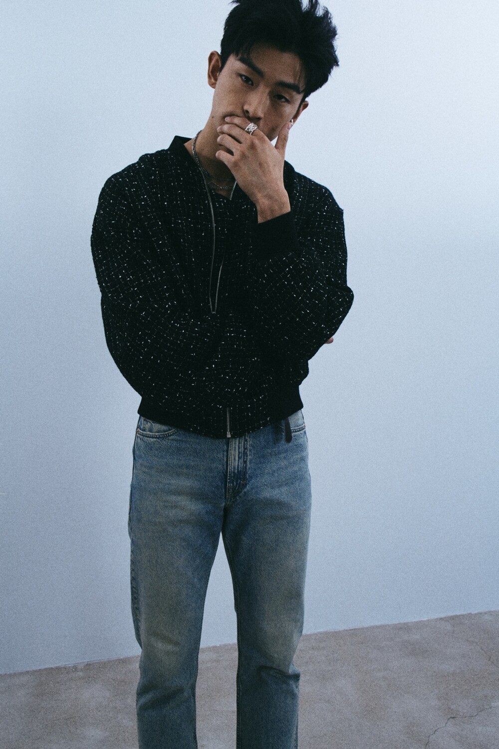 + black tweed bomber jacket